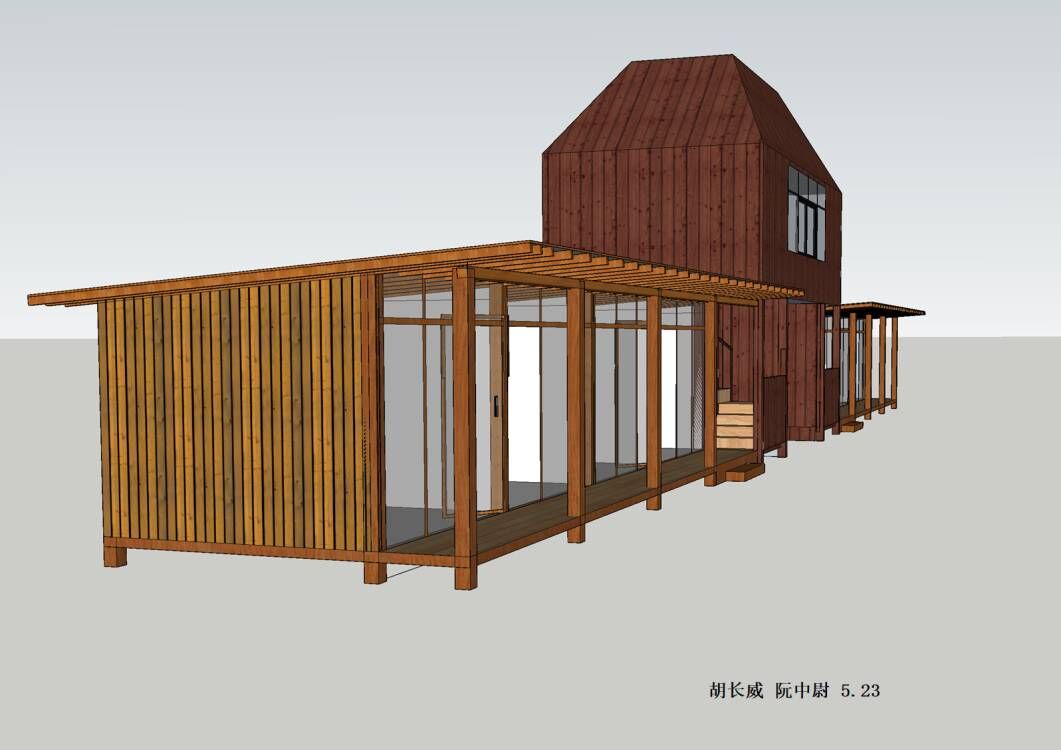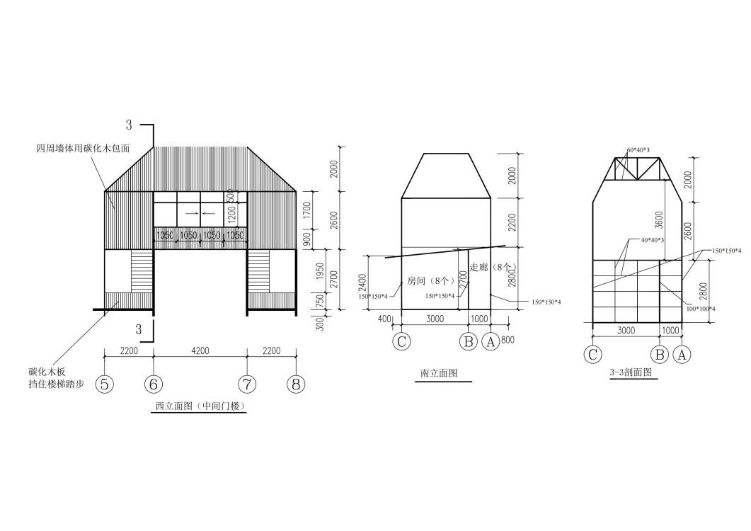 6.八间书屋之间的墙体采用钢龙骨+双层碳化木板形式。