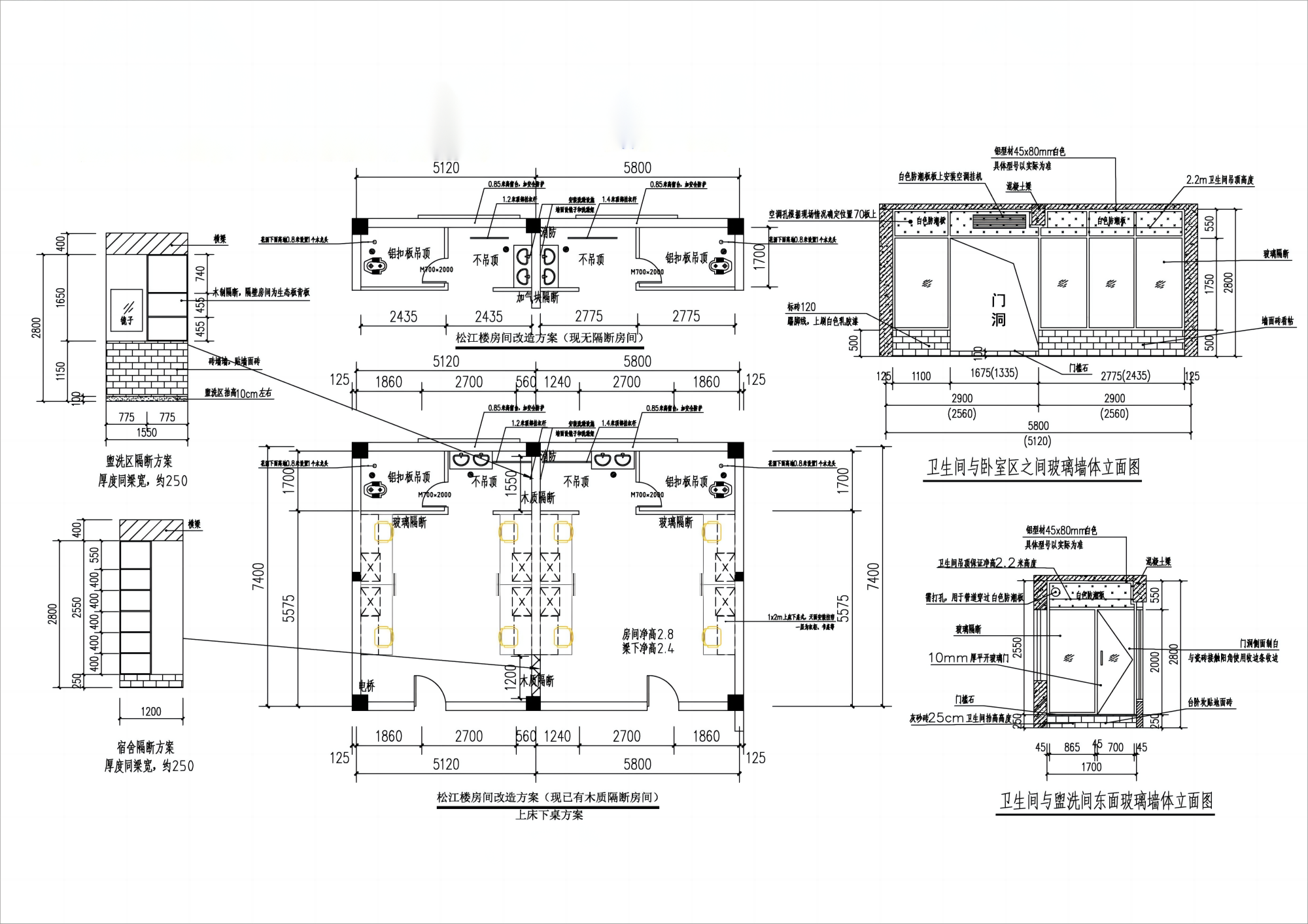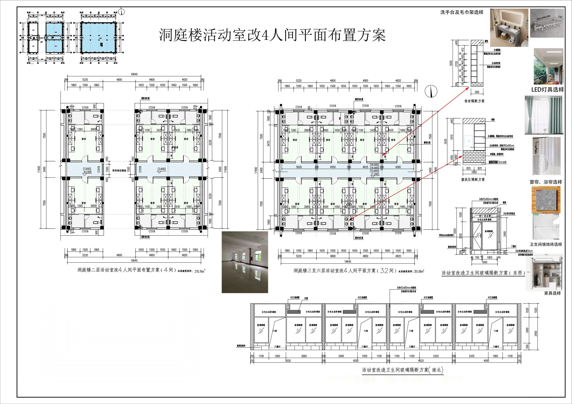 我校学生公寓改造项目分为松江楼部分及洞庭楼活动室改造工程,其中,洗漱区和厕所均采用铝型材玻璃隔断,详细数据如下: