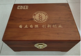 对我校现有库存香樟木盒进行表面雕刻文案的更改及整体翻新,封面以校徽、校训、校风主要元素构成,下附库存香樟木盒实物图。