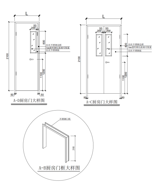 2.款式:一体成型平面门扇,双包门套,带200*800mm可视窗安装6mm钢化玻璃;