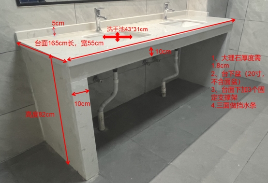 一、中南学生公寓大理石台面的数量和技术要求(详见下图表)