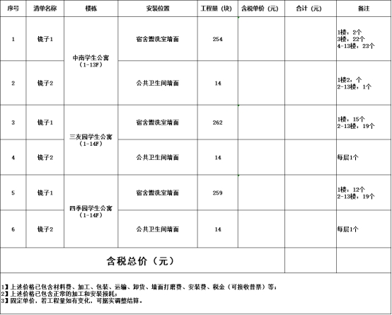 一、项目名称:武汉生物工程学院新建学生公寓盥洗室墙面镜子采购项目