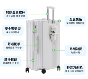 3.要求:箱体为ABS+PC材质,大小为24寸,配备多功能万向轮,金属拉杆。