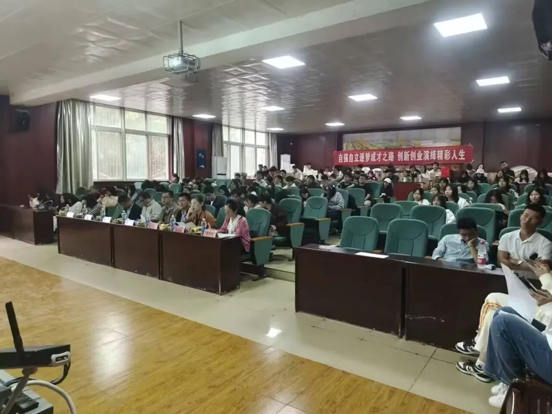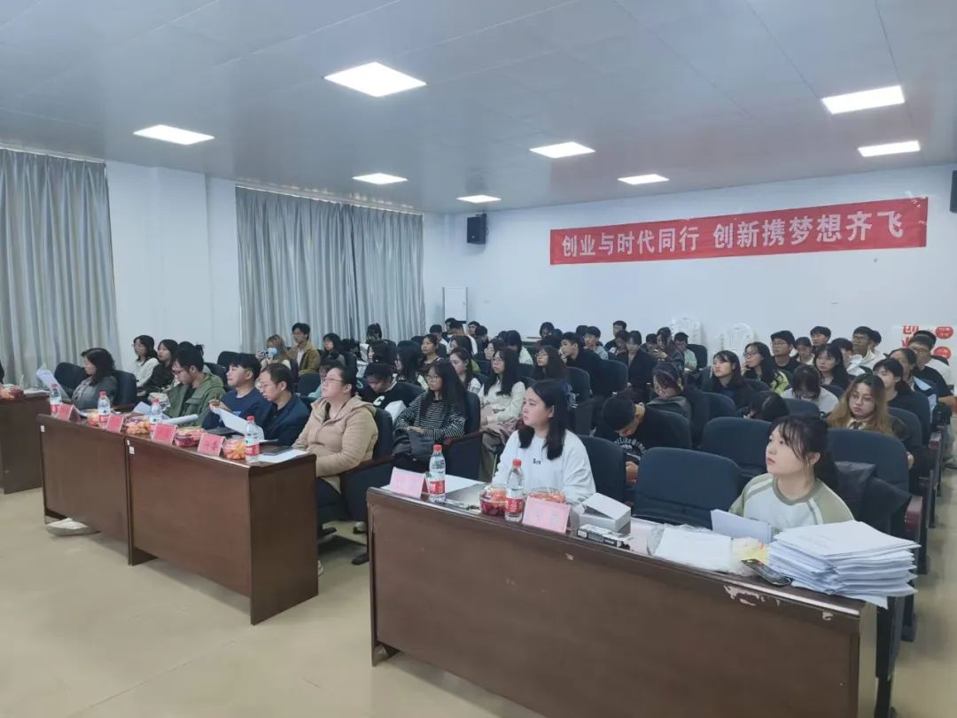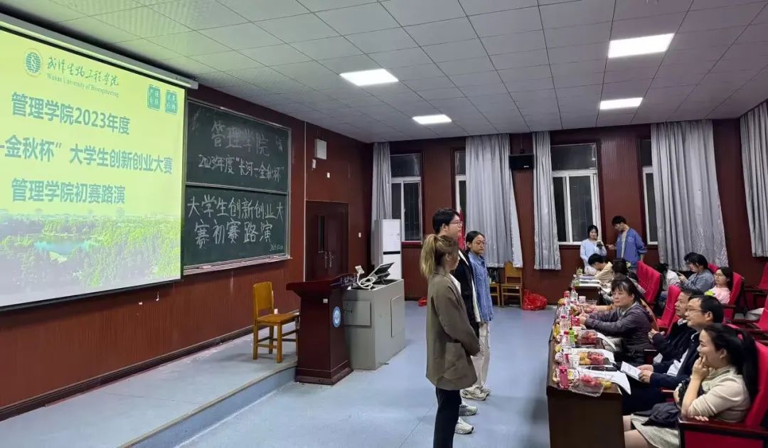 管理学院在6号教学楼东方红报告厅举行2023年度“长河-金秋杯”初赛。学校科技处处长袁飞荣、教务处副处长韦丽莉、管理学院党政负责人和学院双创俱乐部指导老师担任评委,四个赛道共24个项目依次进行了路演。