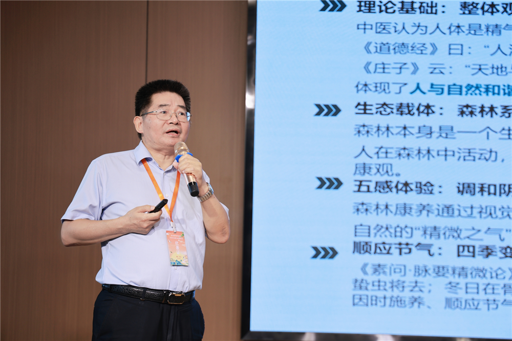 主旨报告环节,国家林草局原副司长刘立军结合多年深耕林草领域的丰富经验,深入解析我国森林康养的起源、现状及产业模式探索方向;华中科技大学附属协和医院教授范恒则从中医视角切入,系统阐释如何依托中医理论挖掘森林康养独特价值。