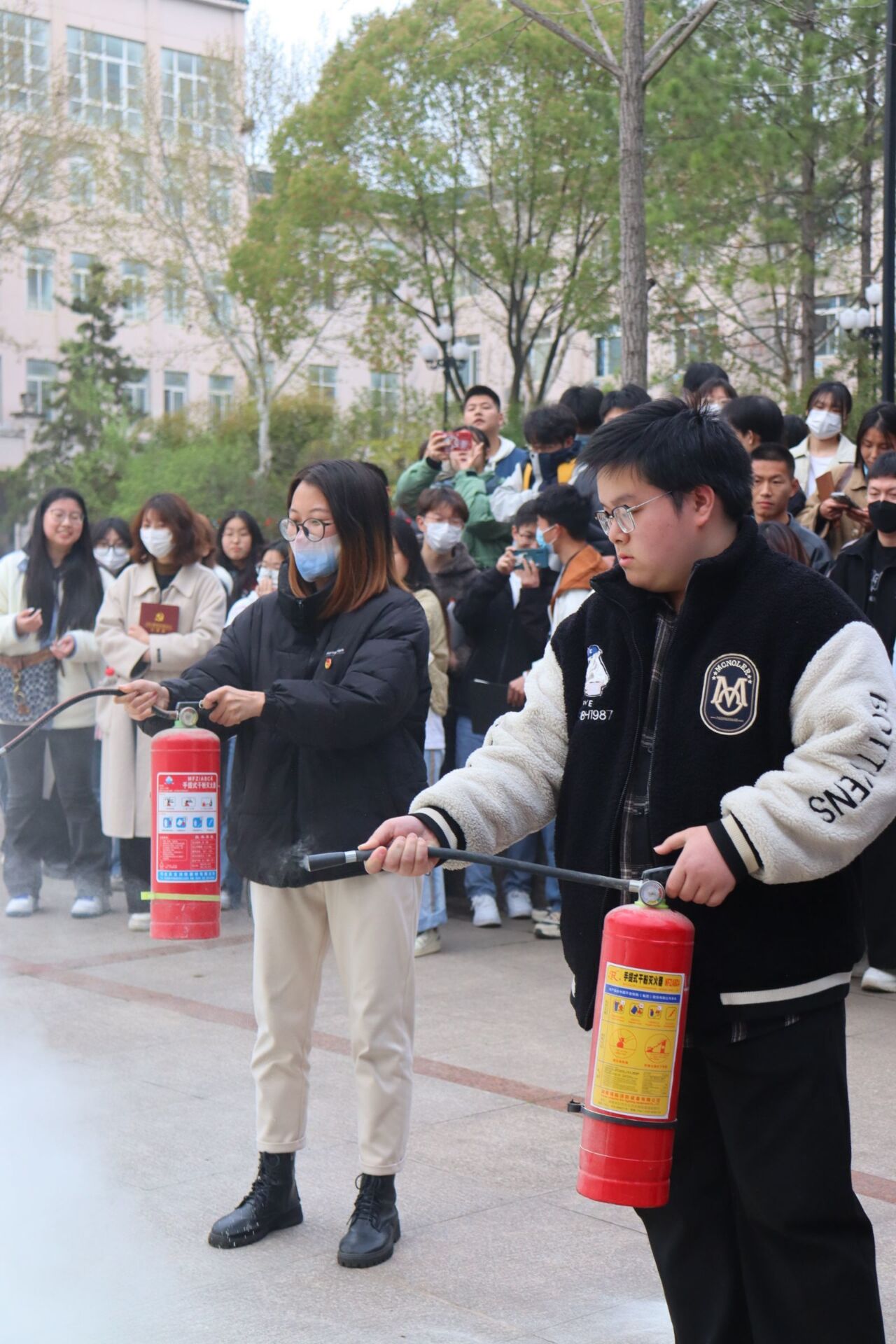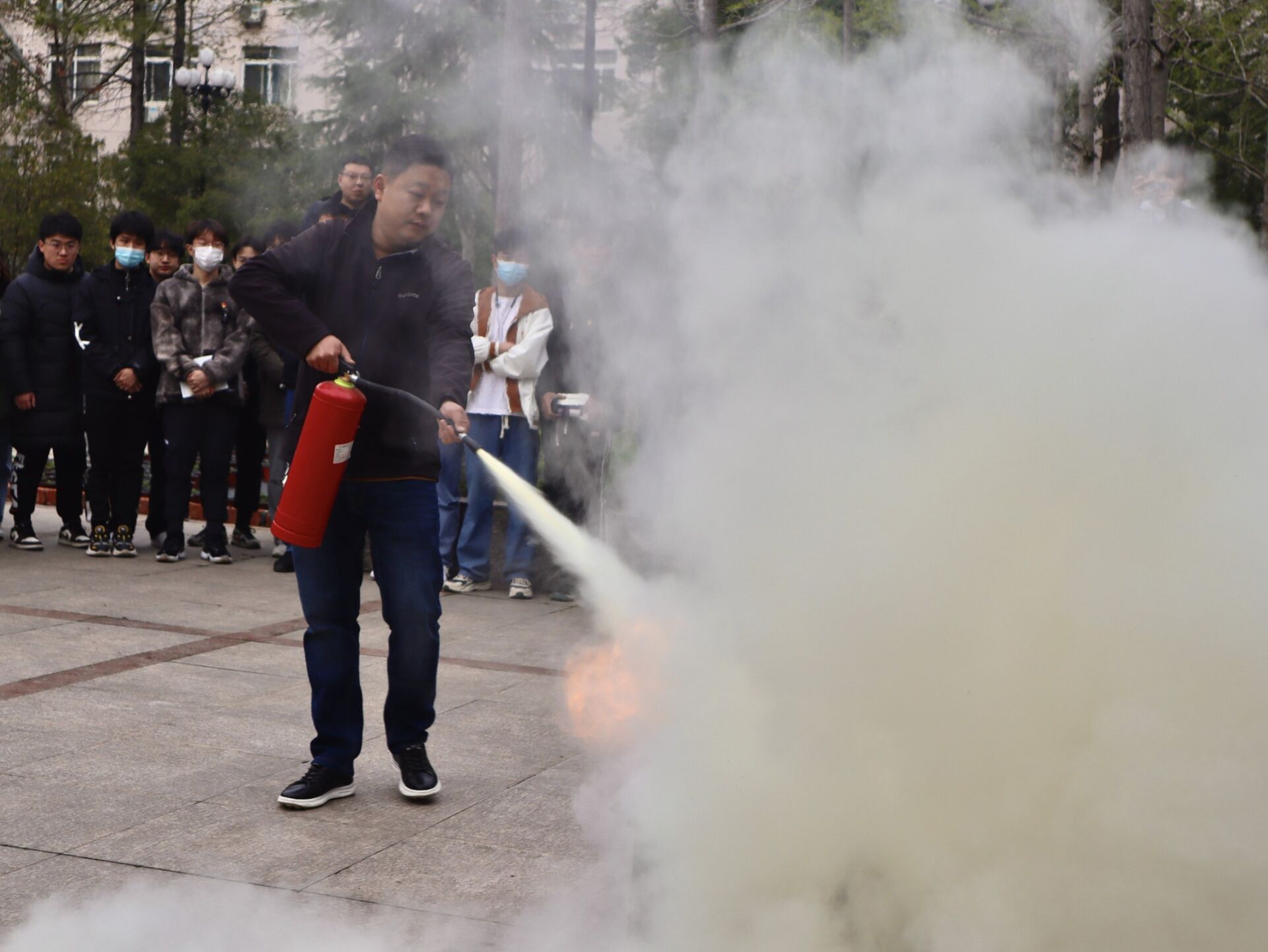 随着警报声响起,同学们在老师的指挥下,用湿毛巾捂住口鼻,弯腰沿着学院制定的路线快速、有序地从学府东一、东二宿舍楼撤离到学府广场上,参与师生在3分钟内全部安全到达学府广场。随后,保卫处副书记周志祥讲解了有关火灾现场的应急处置方案、灭火器的使用原理以及相关的注意事项,并亲自演练了灭火器的使用方法。同学们亲自体验了现场灭火,面对燃烧的火堆,同学们十分沉着,严格按照灭火的步骤和方法,将汽油燃起的大火扑灭。最后,我院党总支常务副书记洪斌对此次消防应急疏散演练活动进行了肯定和总结。