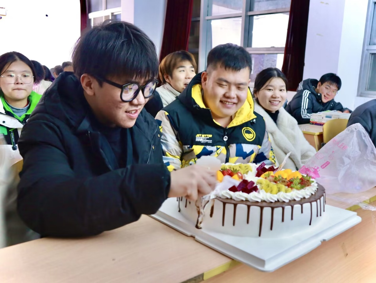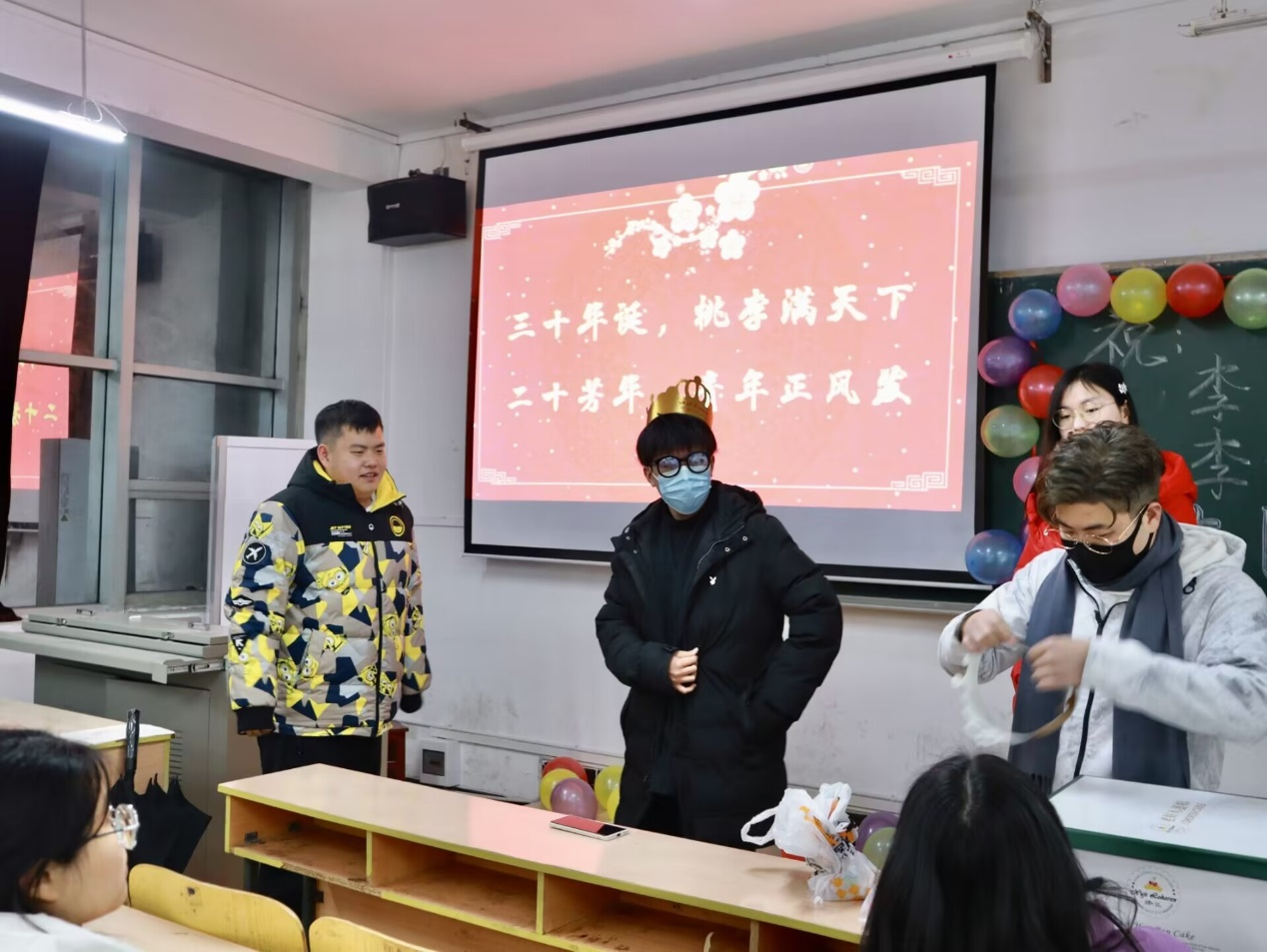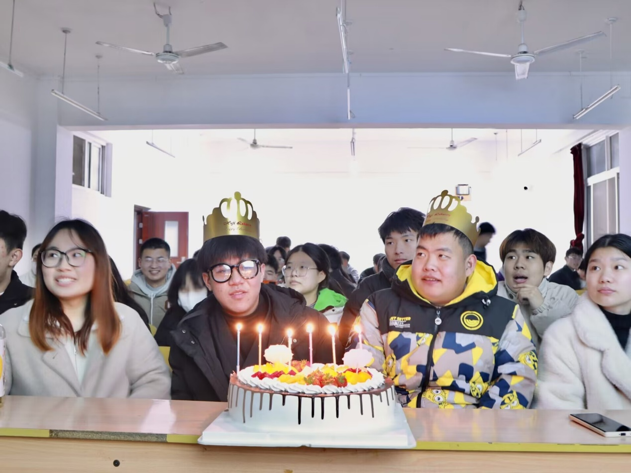 (本网讯通讯员周小琨 姚奕彤摄影袁佳煊)开学季是一段满含希望朝气蓬勃的时光,刚报到的学生们对新学期的学习和生活充满热情,同时也会因离开父母而感到孤独不舍。学校是知识的海洋,也是师生们共同组成的温暖大家庭,为了让刚报到的小伙伴感受到家的温暖,2月12日晚上7点30分,管理学院在6号楼208教室,为报到日过生日的学生李亦强和李金钊开展了生日庆祝活动。