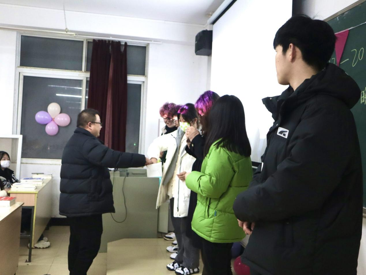 礼物虽然常见,但是心意难得,整个晚点名沉浸欢乐祥和温馨的氛围之中,被抽到的同学飞快地跑上讲台取下战利品,没被抽到的同学在看到跑上去同学的滑稽样子也满是调侃的笑意。“就剩最后几个了,本来以为没有机会抽到我,抽到我的时候真的很惊喜”2022级大数据与财务管理专科二班的王文慧在礼品所剩无几后被抽到时兴奋的说道。