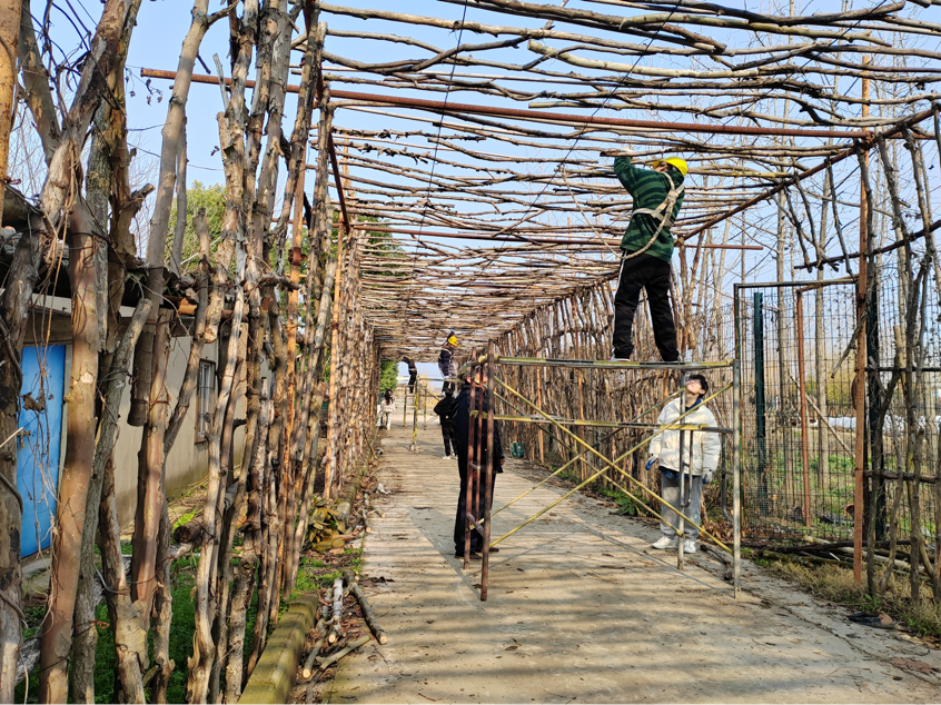 在翠微居南侧的活动主要是以清扫落叶为主,而智慧农场的活动则是以拧铁丝为主要。在活动进行过程中,虽然天气寒冷,但同学们的热情依然十分高涨。秉持着不怕脏、不怕累的精神,活动现场井然有序,同学们分工协作,忙得不亦乐乎。大家挥舞着手中的扫除工具,争先恐后的为学院的环境美化贡献自己的一份力量,整个现场呈现一派热火朝天的劳动景象。