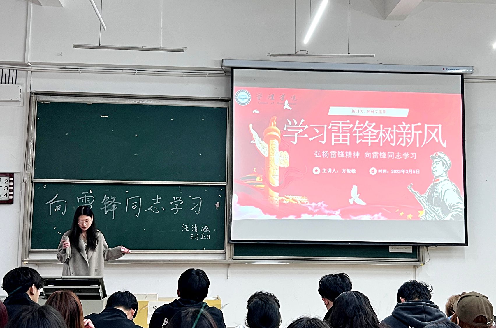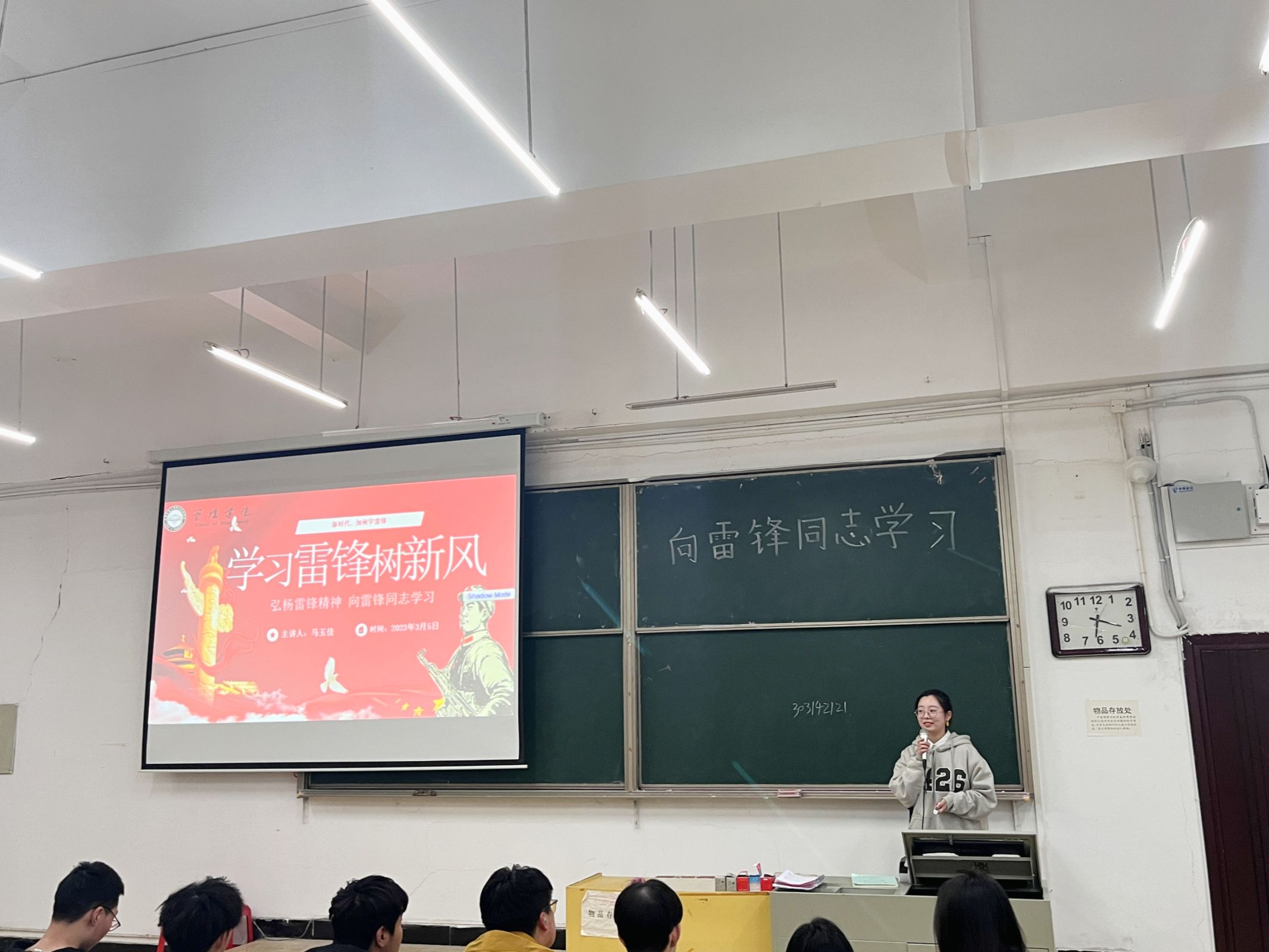 (本网讯通讯员 学府网宣 摄影 学府网宣)3月5日下午,为弘扬雷锋爱党爱国的崇高理想和坚定信念,服务人民、助人为乐的奉献精神,管理学院邀请段继豪、马玉佳、李生、方俊敏、朱倩茹、王淑敏等六位2020级党支部优秀干部在不同分会场为2022级管理学院新生宣讲“学雷锋”精神。