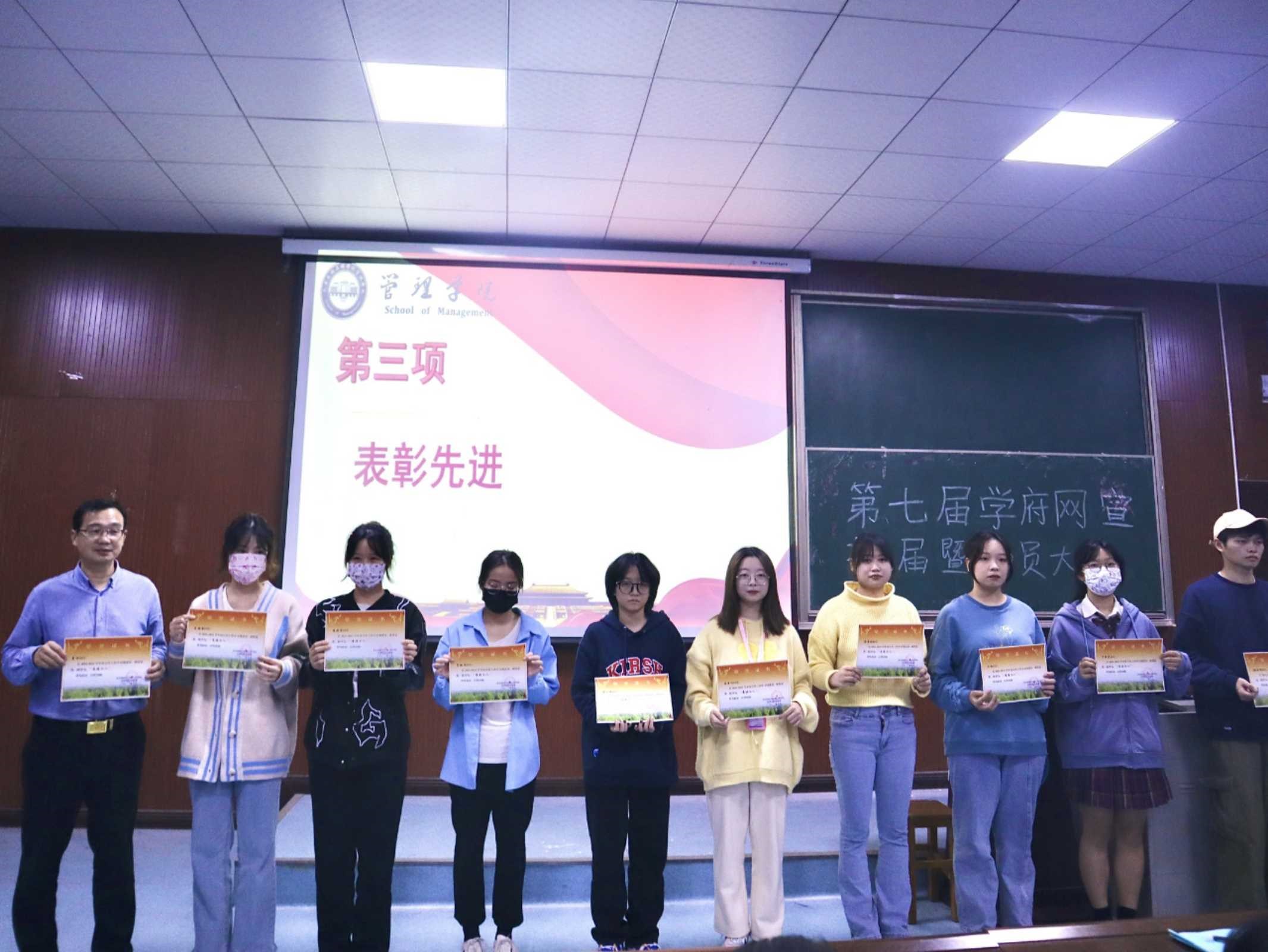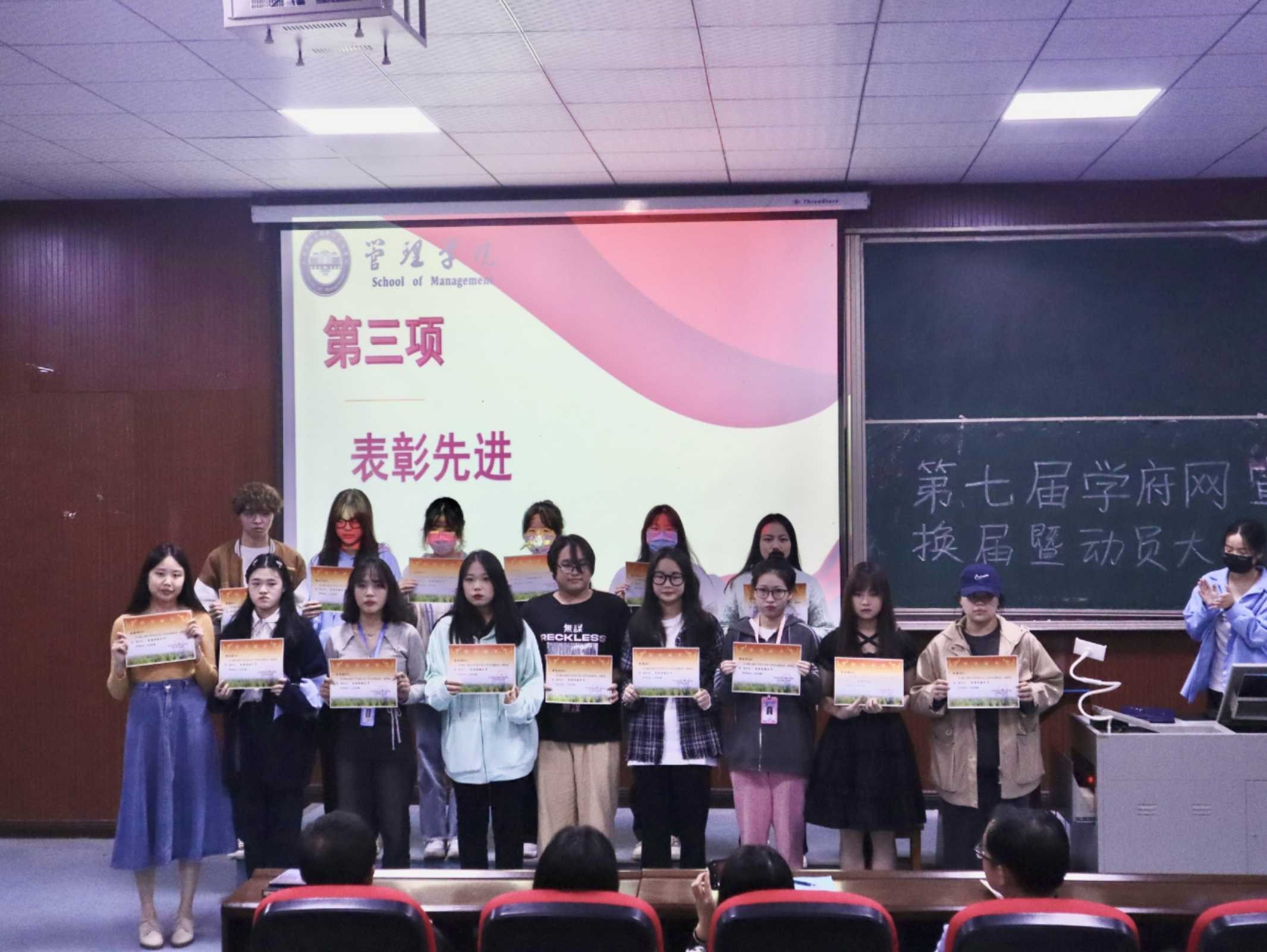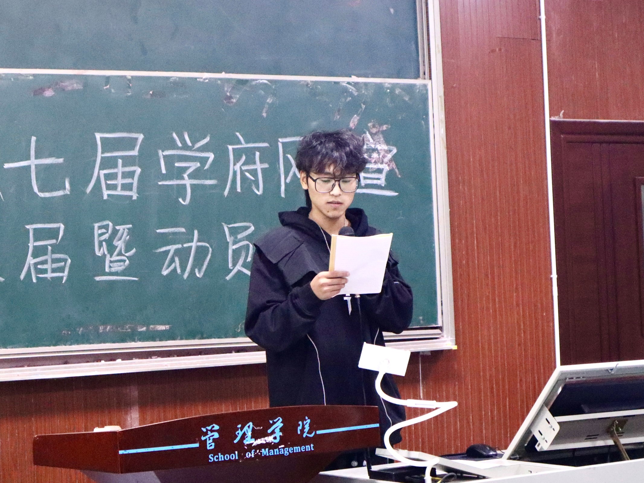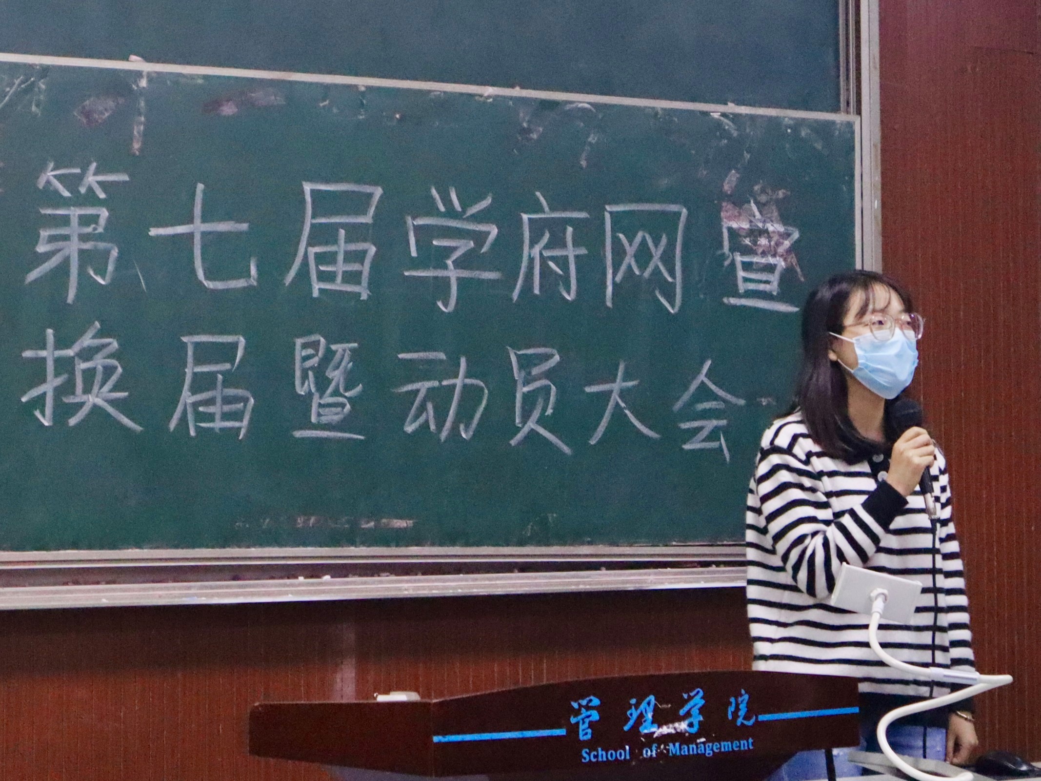 本网讯(通讯员崔浩冉摄影王诗婷)11月11日晚,第七届学府网宣工作站换届暨动员大会于学府教学楼东方红报告厅召开。管理学院党总支常务副书记洪斌、管理学院分团委书记陈洋、管理学院分团委副书记汪清涵、学府网宣工作站指导教师周小琨、管理学院辅导员老师、第六届学府网宣工作站全体成员以及第七届学府网宣工作站全体成员参加会议。会议由马玉佳、肖晓雨主持。