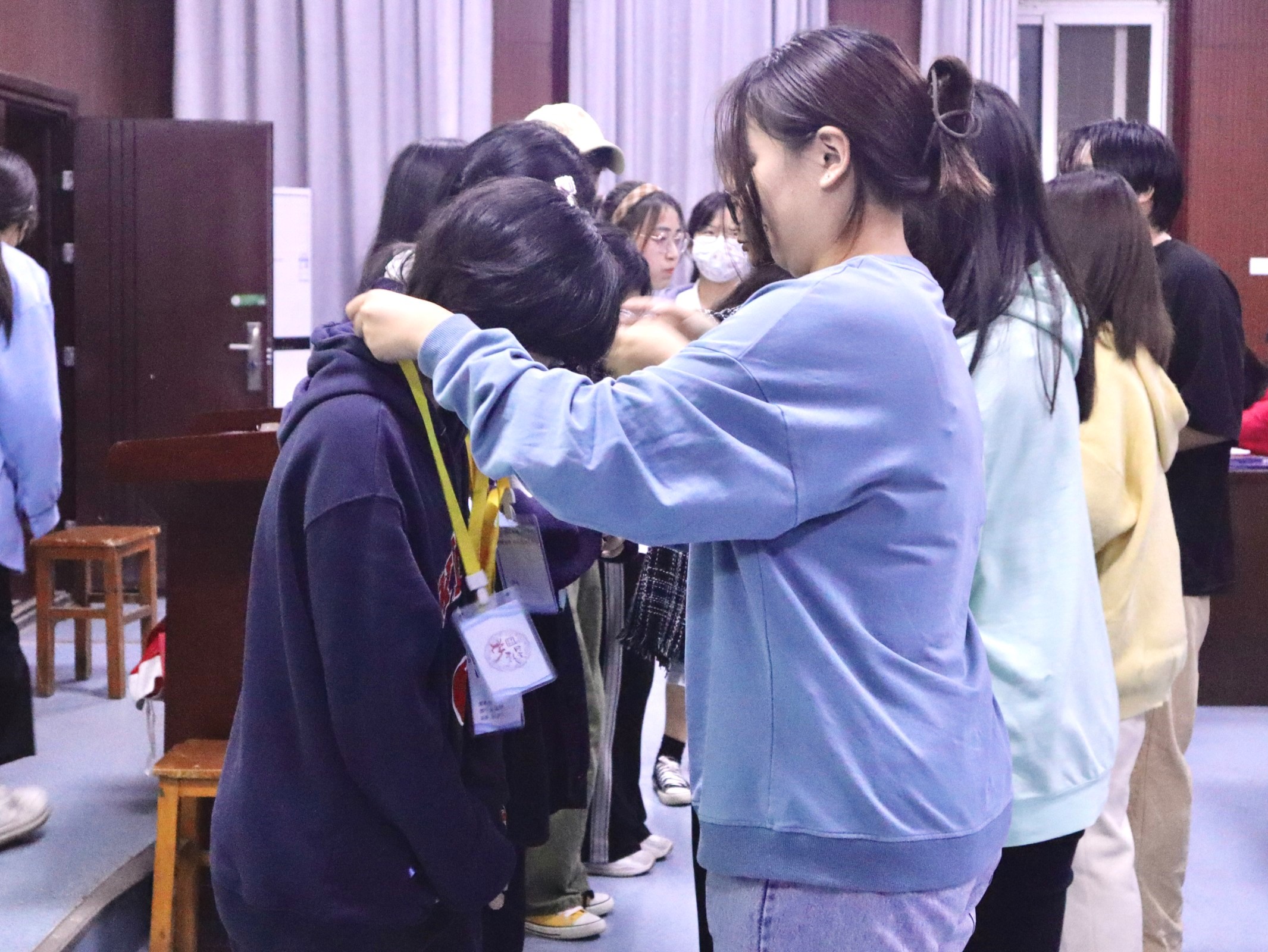 陈洋、汪清涵分别为第六届学府网宣主席团、第六届学府网宣各部门部长颁发聘书,周小琨宣读第七届学府网宣人事任命并由学府网宣第六届成员为新一届学府网宣干部佩戴工作证。