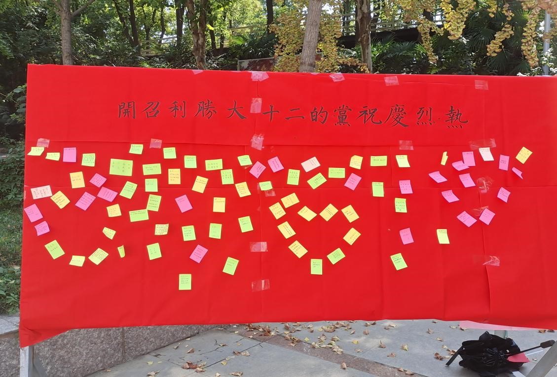 大会开始前,管理学院全体党员齐聚学府广场,用心写下对党的真挚祝愿。