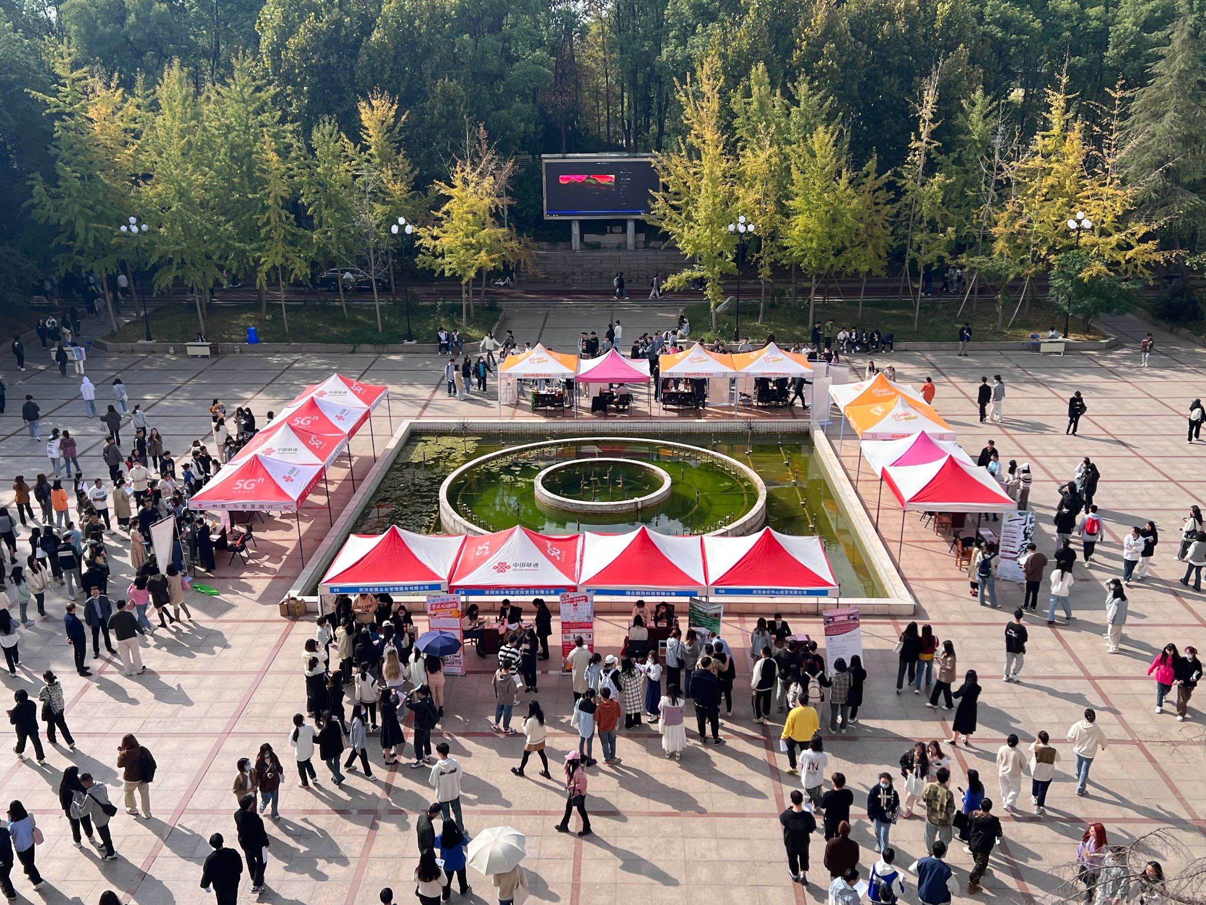 本网讯(通讯员 于涵 摄影 曹吴睿 袁佳煊)10月20日上午,在学府家园广场举办专场校园招聘会,本次招聘会共邀请了北京兴华会计事务所湖北分所,长江证券股份有限公司,武汉信盟企业管理服务有限公司等16家优质企业进场招聘,另有唯品会电子商务有限公司因疫情管控,选择线上招聘。累计提供岗位达600余个,覆盖管理学院各个专业,涉及财务、电子、酒店等十几个行业,共有800余名毕业班学生到场参会应聘。