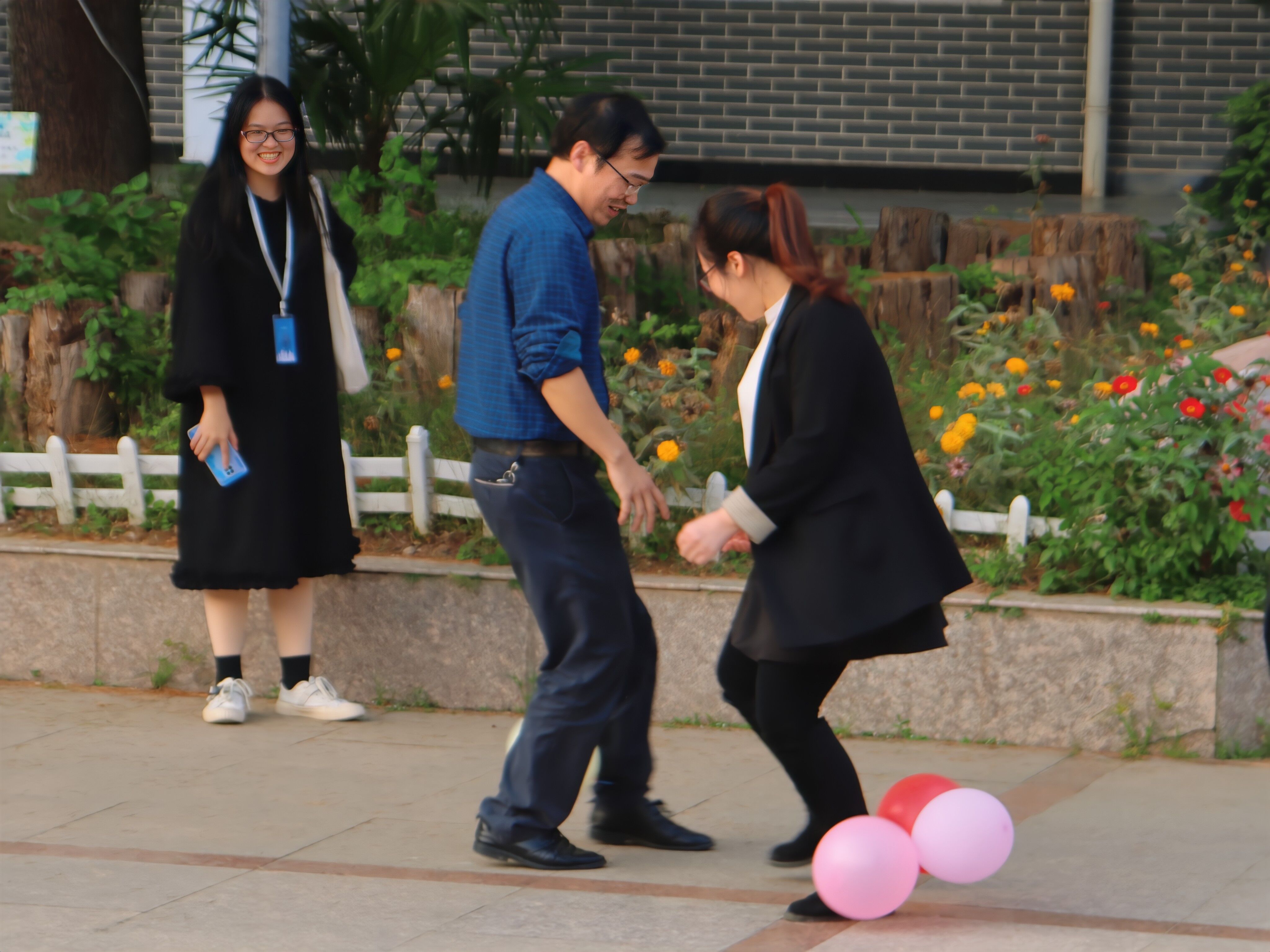 图为踩气球比赛