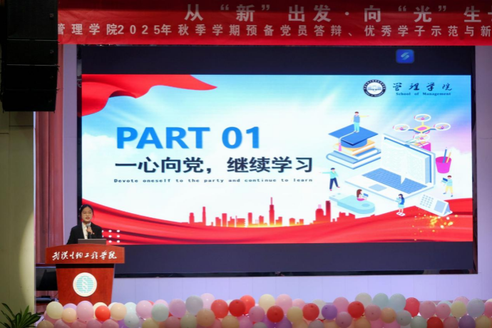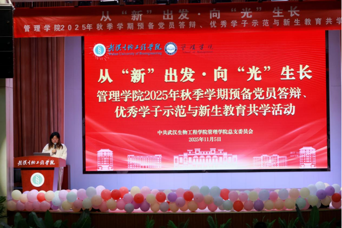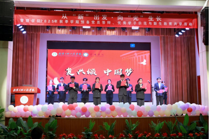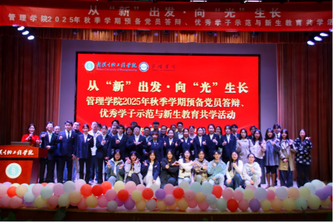 本网讯(通讯员 刘炎 摄影 王昊邦 张冉 王亦宁)11月5日晚,管理学院2025年秋季学期预备党员答辩、优秀学子示范与新生教育共学活动在玉兰音乐厅举行。校学生工作处副处长廖汉辉受邀出席并对活动作点评。学院党政领导、全体辅导员、学生党员、发展对象、入党积极分子及2025级新生代表400余人参加活动。活动由学院党总支副书记张玉主持。