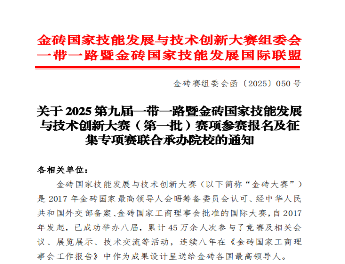 据悉,一带一路暨金砖国家技能发展与技术创新大赛是经外交部备案、金砖国家工商理事会批准的国际性技能赛事,已连续举办八届,累计吸引全球45万余人次参与。本项赛事被列入中国高等教育学会《全国普通高校大学生竞赛分析报告》竞赛目录,系我校认定的B类重点竞赛项目。本届赛项聚焦大数据财务应用与管理会计决策核心能力培养,吸引全国多省(市)数百支高校代表队同台竞技,是检验财经类专业实践教学成效的重要平台。