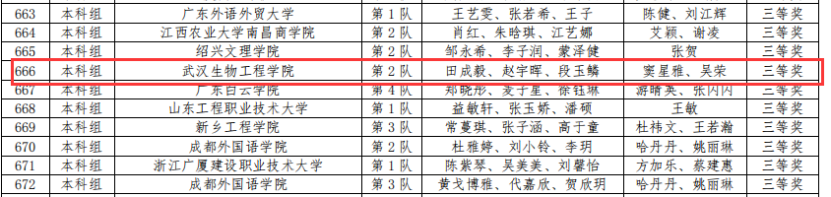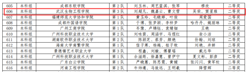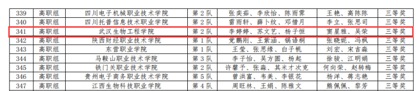 高职组荣获三等奖1项、优秀奖1项,如下: