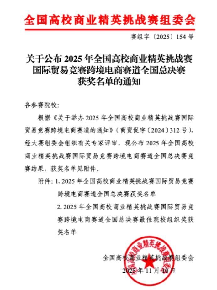 全国高校商业精英挑战赛已连续多年纳⼊全国普通高校大学生竞赛排行榜目录,也是国内商科教育领域影响力较大的权威赛事之一,是学校重点支持的A类高水平学科竞赛。赛事以“真实跨境电商运营场景模拟”为核心,注重培养学生的国际视野、创新意识和实践能力。