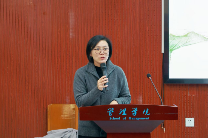 本网讯(通讯员 谢佳乐 拍摄 张冉)11月18日下午,管理学院在东方红报告厅举办“AI时代绿色金融的演进路径与实践”主题学术讲座,特邀武汉纺织大学陈蕾教授主讲。讲座由学院副院长赵毅主持。