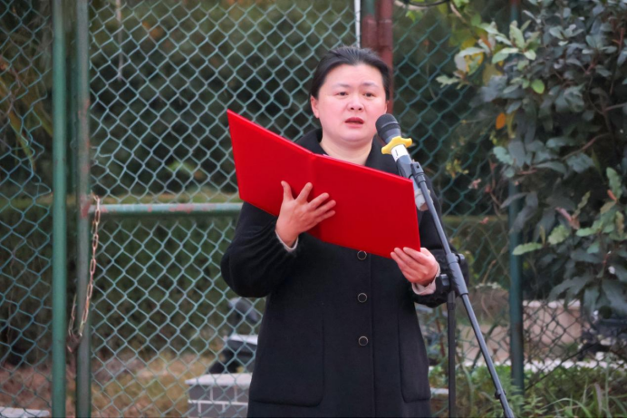 教师代表鲍金玉围绕“以法治教育筑牢育人根基”发言,强调了法治教育的重要性,表明了全体教师助力学生成长的坚定态度。