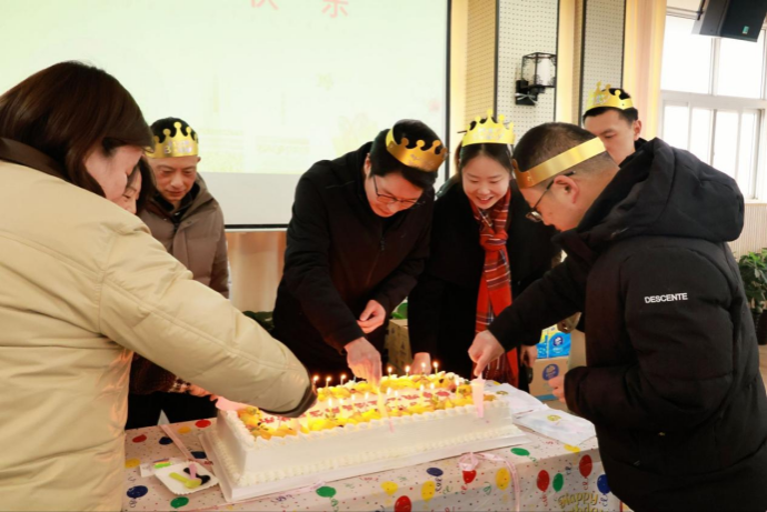 温馨的集体生日环节随即拉开帷幕,12 位 11 至 1 月生日的寿星老师笑意盈盈地登台,工作人员为每位寿星递上盛放的鲜花与印着学院标识的时光心愿卡。生日蜡烛被点亮,全场齐唱《生日快乐》,甜香与歌声交织成温暖的画面。