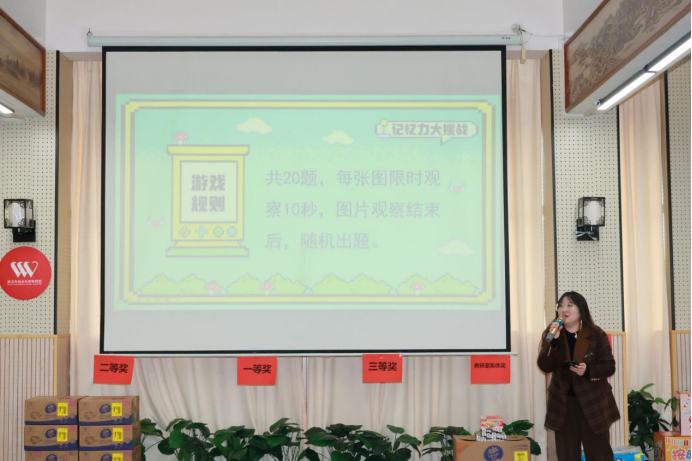 随后的互动环节热闹升级,“看图猜台词”里,老师们抢着喊出那些名场面台词,耳熟能详的台词顿时让大家笑成一团;“过目不忘”游戏考验着大家的记忆力,出错时的自嘲与答对后的欢呼交织成最鲜活的烟火气。紧接着,《好久不见》的婉转歌声、《流星雨》的青春合唱、《世界赠予我的》的温柔独唱轮番登场,每一段旋律都让暖意更浓。抽奖环节中,20 位三等奖、10 位二等奖与 5 位一等奖的幸运儿接连诞生,拿到奖品的老师笑着与身边人分享喜悦。