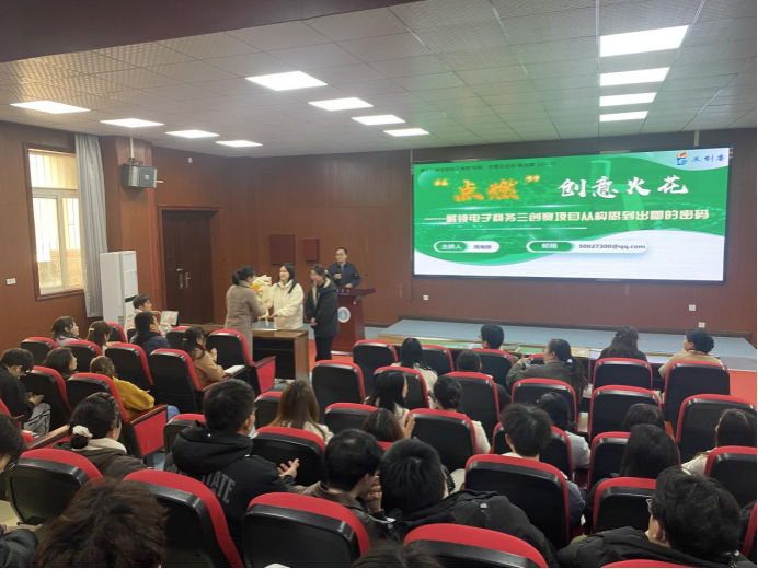 本网讯(通讯员 陈婕)2025年12月10日下午,管理学院在六号楼东方红报告厅举办“点燃创意火花——解锁电子商务‘三创赛’(即:电子商务“创新、创意及创业”挑战赛)项目从构思到出圈的密码”专题讲座。本次讲座特邀黄冈师范学院周海琼老师担任主讲,副院长赵毅主持,学院无课师生代表到场聆听。