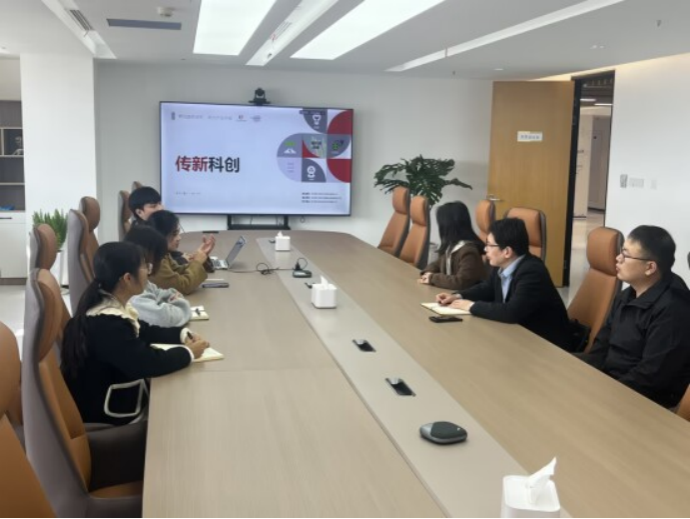 随后,团队考察聚华传新科技孵化园,并专程看望在此实习的3名2026届毕业生,详细了解其实习内容、成长收获及生活状况,鼓励学生把握实践机会。与园区运营负责人童心座谈中,双方明确将在拓展就业渠道、联合创业孵化等方面接洽合作。