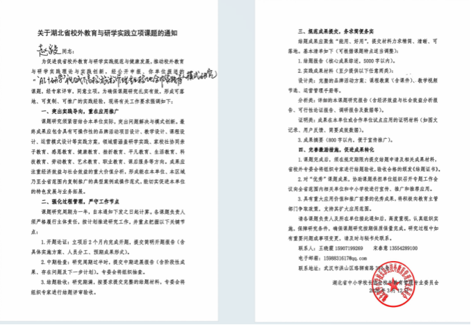 (通讯员 陈婕)近日,湖北省中小学校长协会校外教育管理专业委员会公布了2026年度校外教育与研学实践课题立项结果。依托我校研学教育与生态实践研究所的实践平台与研究基础,由管理学院赵毅及其团队申报的课题《“AI+研学”视域下高校旅游管理专业校地合作实践育人模式研究》成功立项。