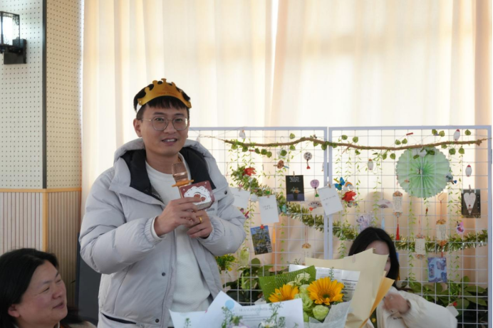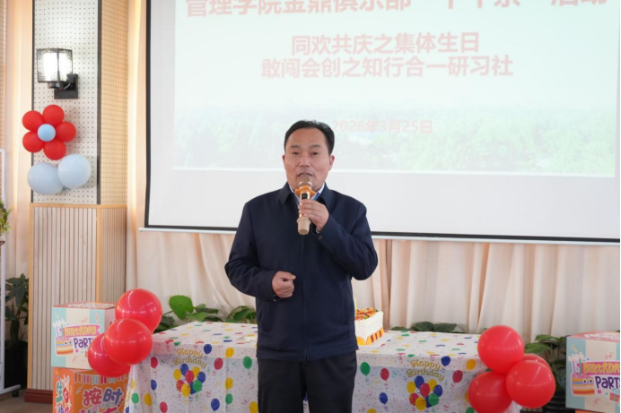 活动伊始,管理学院院长陈中文上台发言,他表示此次活动将集体生日的温情与非遗文化体验相结合,既希望让各位教职工在忙碌的工作之余放松身心、感受集体温暖,以更饱满的热情、更团结的姿态投入到学院教学与管理工作中,同时也为2-3月过生日的教职工送上了真挚的生日祝福。