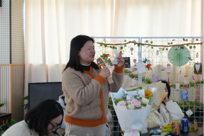 活动在轻松欢快的暖场节目中拉开序幕,灵动的表演瞬间活跃了现场气氛,为整场活动奠定了温馨和谐的基调。随后,活动第一环节——2-3月教职工集体生日会温情开启,赵毅、王春梅、鲍金玉等9位寿星教师成为全场焦点。学院精心为每一位寿星献上鲜花,饱含着对老师们的美好祝福与诚挚敬意,让大家真切感受到学院大家庭的温暖与关怀。