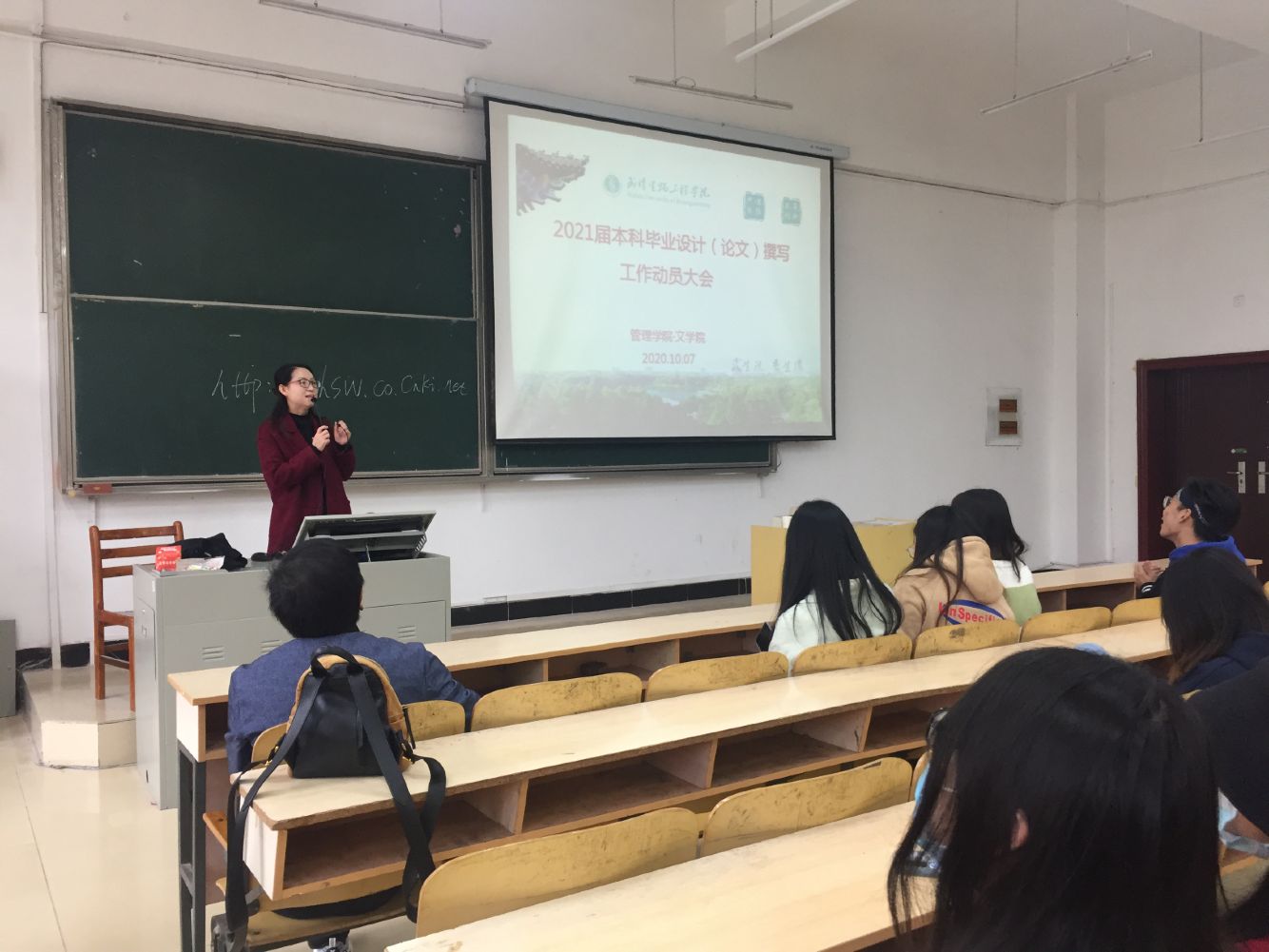 本网讯(通讯员 刘廿禾)10月7日下午,管理学院•文学院在六阶四教室组织开展2021届毕业论文撰写动员大会。会议由管理学院·文学院常务副院长黄亚兰、专任教师范仁军主讲,2021届毕业论文指导老师及全体毕业生参与会议。