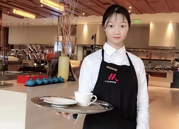 怀揣欣喜与期待,2018年9月张滢加入了珠海新骏景万豪酒店的实习生队列。正式工作的第一天,她接触的岗位是餐厅的收银和酒吧台。作为一名酒店管理专业的学生,张滢说,在学校时自己最弱的便是财务管理科目了,所以从开始接触收银和做账的工作后,她常常犯错,变得急躁。而后,在不断地挑战与挫折中,在同事的安慰与鼓励下,张滢对工作也开始慢慢变得熟练起来。现在的她也开始当起了小师傅的角色,带着新来的实习生,教她们做收银做账。“书本知识仅仅只能作为理论基础,而在实践中却有一百万种你可能预测不到的情况。”每天上下班,一站就是8个小时,站到脚踝痛,或遇难缠不礼貌的客人,张滢努力调整自己的情绪,克服困难。张滢说自己曾是一个连瓶盖都拧不开的女孩子,每次去冷库领用每日货物的时候,会觉得重,觉得冷,但只要听见同事说:“嘿,又是你呀!”的时候感觉很亲切。在这四个月里,张滢在不同的岗位上都有过尝试。现在的她每天奔走在前台和财务,不知不觉地成长着。她说,这段实习经历最好的地方在于,自己开始学会理性判断自身性格缺陷并努力改变,开始明确自己需要掌握什么知识技能,开始清晰了方向感。