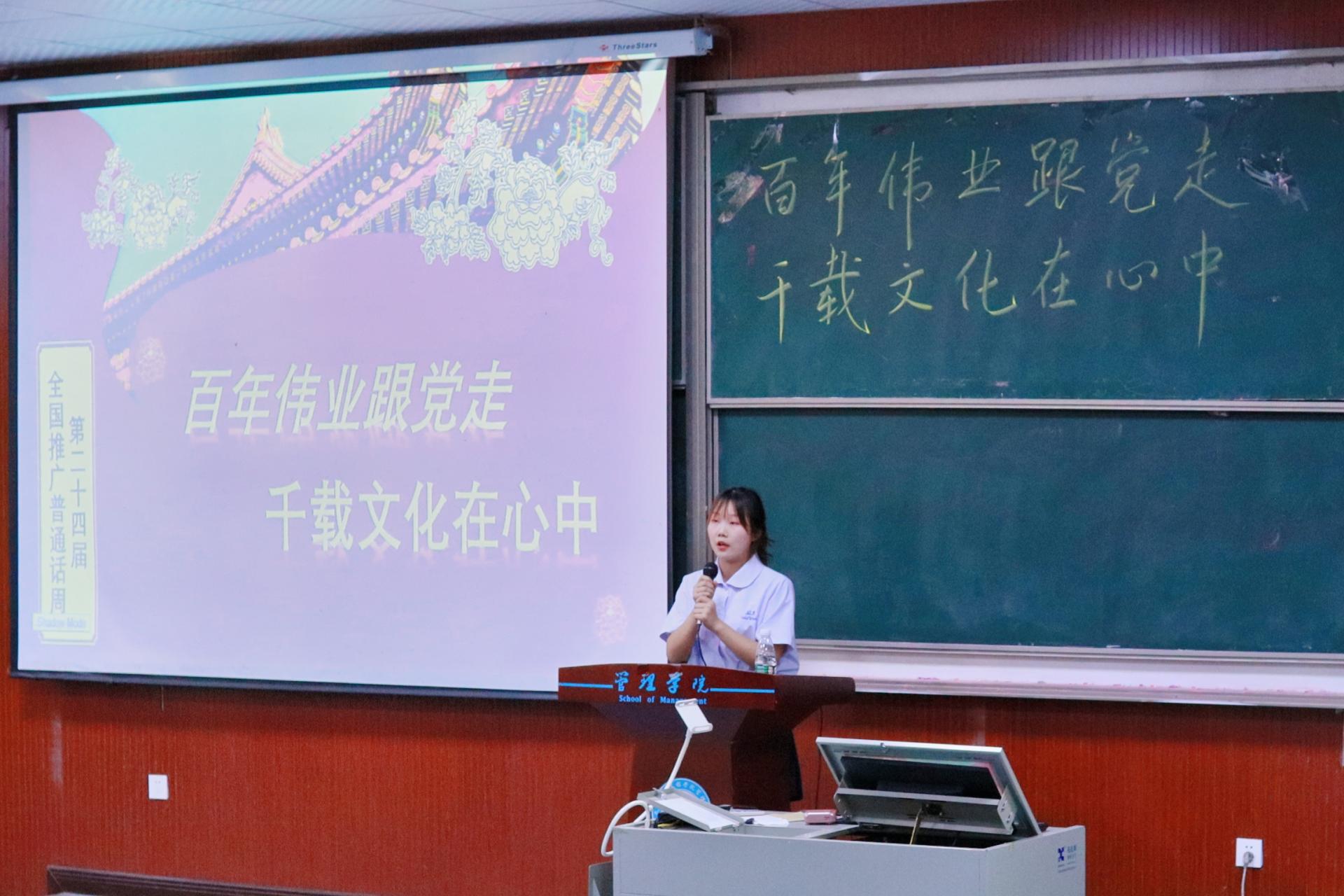本网讯(通讯员李梓裕摄影高琳琳)为大力推广和规范使用国家通用语言文字,自觉传承和弘扬中华优秀传统文化,管理学院·文学院以“推普周”为契机, 分别推出了普通话知识竞赛和“百年伟业跟党走,千载文化在心中”演讲比赛活动。