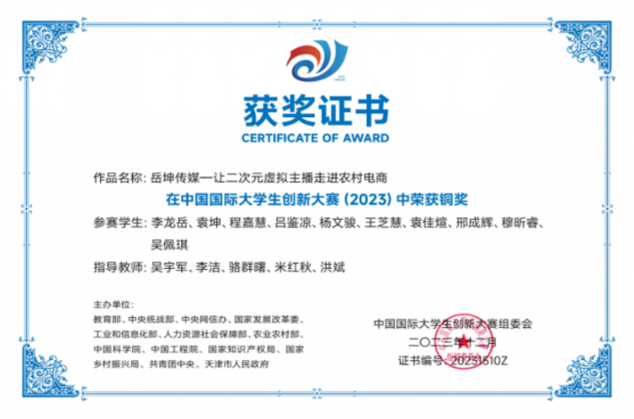 图9:营销专业学生获中国国际大学生创新大赛铜奖