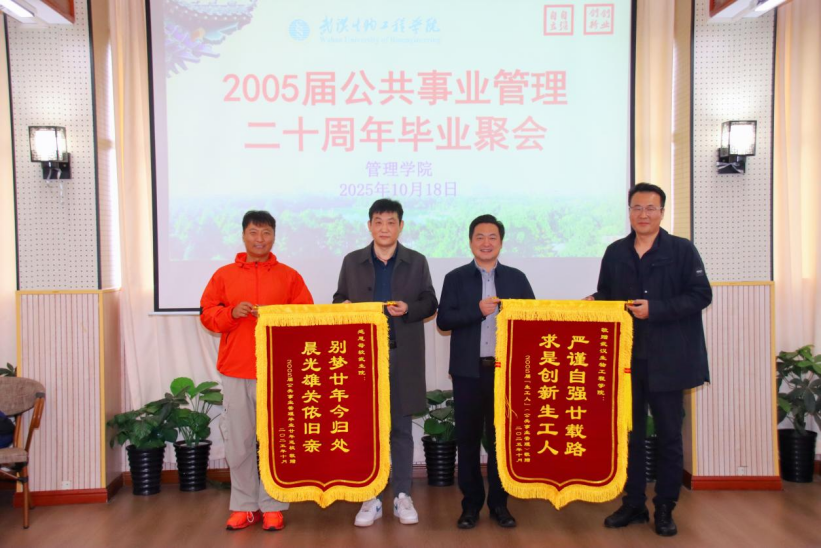 (通讯员 刘炎 摄影 刘宏熠 高瀚 张冉)雨润归途,情暖管院。2025年10月18日,武汉生物工程学院迎来了管理学院2005届公共事业管理专业近三十位校友返校团聚。校党政办主任、校友办主任张重阳、招生就业处处长李昌龙、校友办付彩凤及学院党政领导、老师出席了本次活动,与返校校友共话发展。