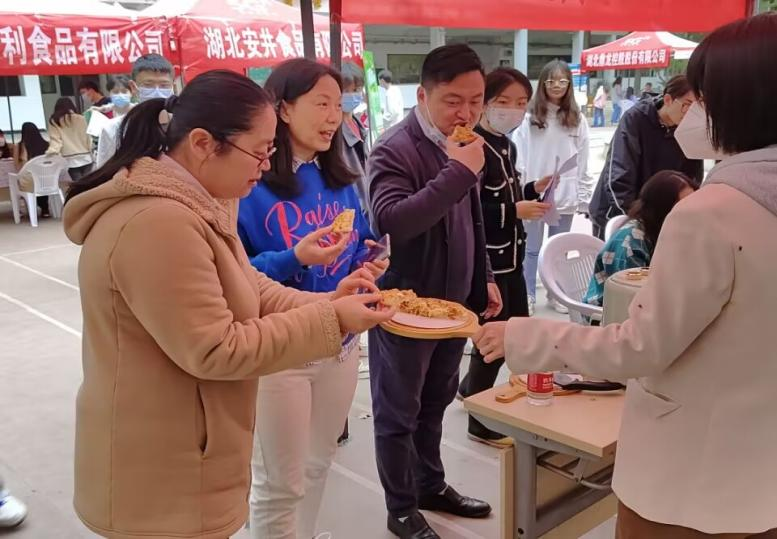 各参会企业纷纷使尽浑身解数,想要通过本次招聘会吸纳更多人才。他们积极热情地解答前来询问的同学们的疑问,参会的毕业生陆蒙蒙说:“我本以为他们会提问一些难题故意刁难我们,但没想到他们都很热情和善”。武汉市汉帝食品有限公司还专门带来了自己的产品,现场制作并邀请前来交流的领导老师及应聘的同学们一起品尝。