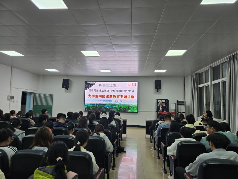针对移动互联网时代校园舆情新挑战,化学与环境工程学院·食品科技学院分别于10 月 15 日和10月17日举办两场网络舆情应对与法治思维专题讲座。10月15日,第一场由学院党总支副书记李本全主持,马克思主义学院赵磊老师担任主讲,学院全体政工干部及大一无课学生参会;10月17日,第二场由马克思主义学院柏林惠老师主讲,学院全体政工干部、学院社团组织负责人、各班主要班委、团干部、班群管理员及学生党员等参会学习。