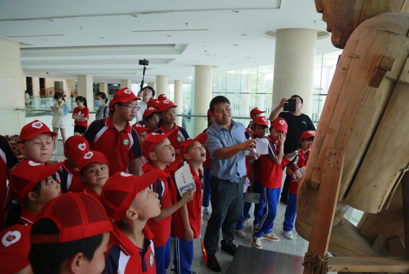 在湖北省博物馆内,小朋友们在骆群曙的组织和讲解下,参观了曾侯乙编钟、越王勾践剑等镇馆之宝,感知先人智慧,积蓄前进力量。
