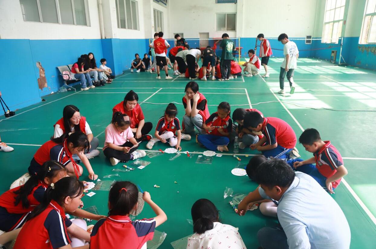 我校机械与电子工程学院·软件工程学院的软件工程学院第一党支部也策划了“圆梦武汉,心手相牵”主题活动,专程迎接研学团的小朋友们。在大学生志愿者的带领下,小朋友们参加了拔河、抖球、套圈等趣味运动会,手工Diy彩绘扇子,写微心愿和送植物种子,晨光体育馆内回荡着小朋友们的欢声笑语。