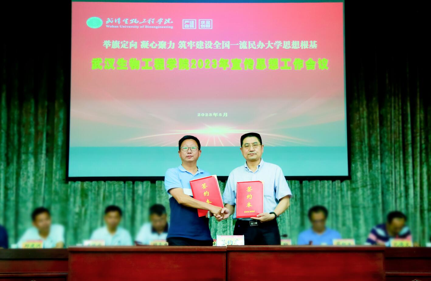 江珩(右)与总务处党总支负责人刘中兵(左)签订2023年度落实意识形态工作责任制责任状