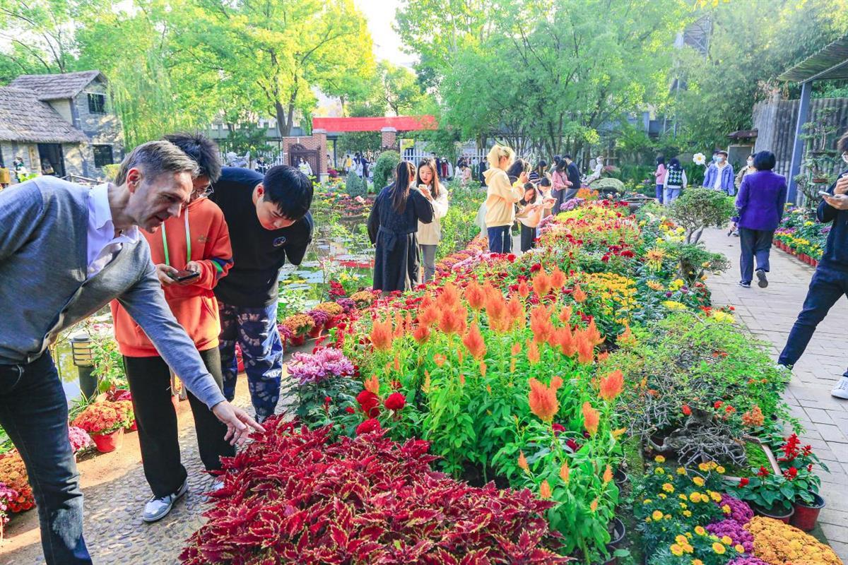 本次秋菊展以该校植物园为主展区。除游园赏花外,该校还设置了“菊花市集”,布局约30个展位,包括“金丝黄菊品鉴区”“菊花系列特色饮料及零食小吃展销区”“菊花酒品鉴区”“菊花系列文创产品展销及体验区”“菊香蟹肥品鉴区”等版块,进一步丰富了本届金秋菊展可逛可赏可玩性,展示了农文旅产品特色,为菊展再添别样景致。