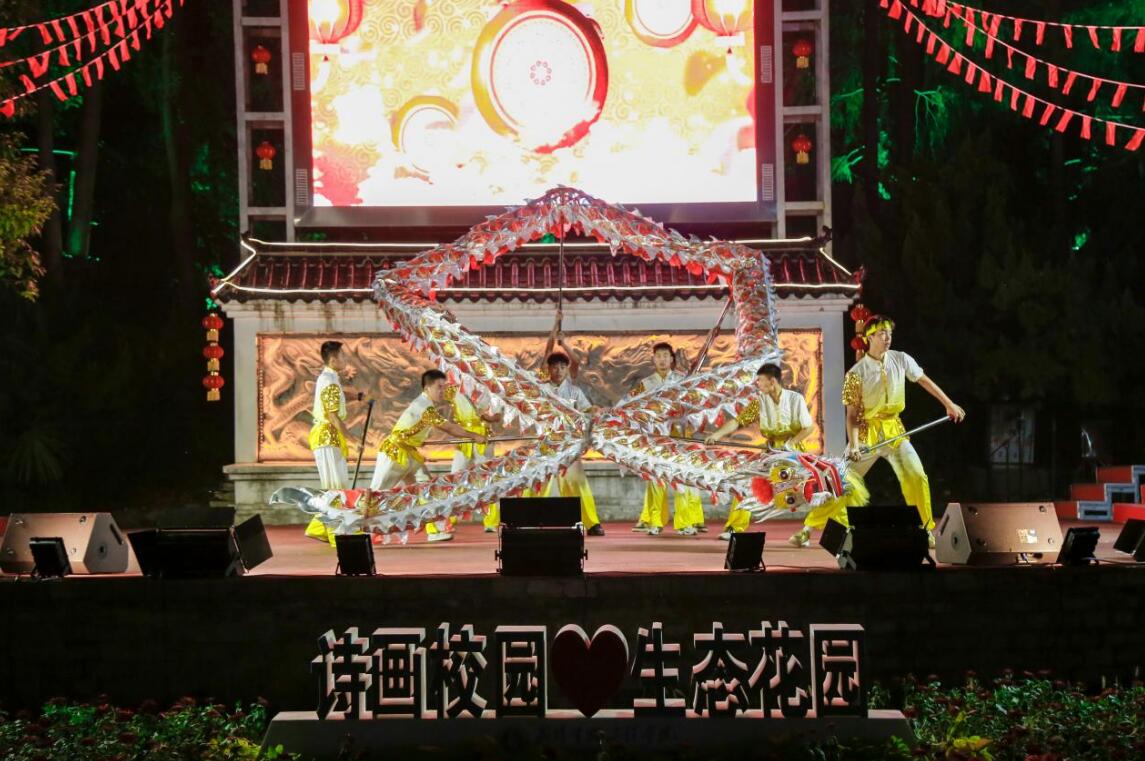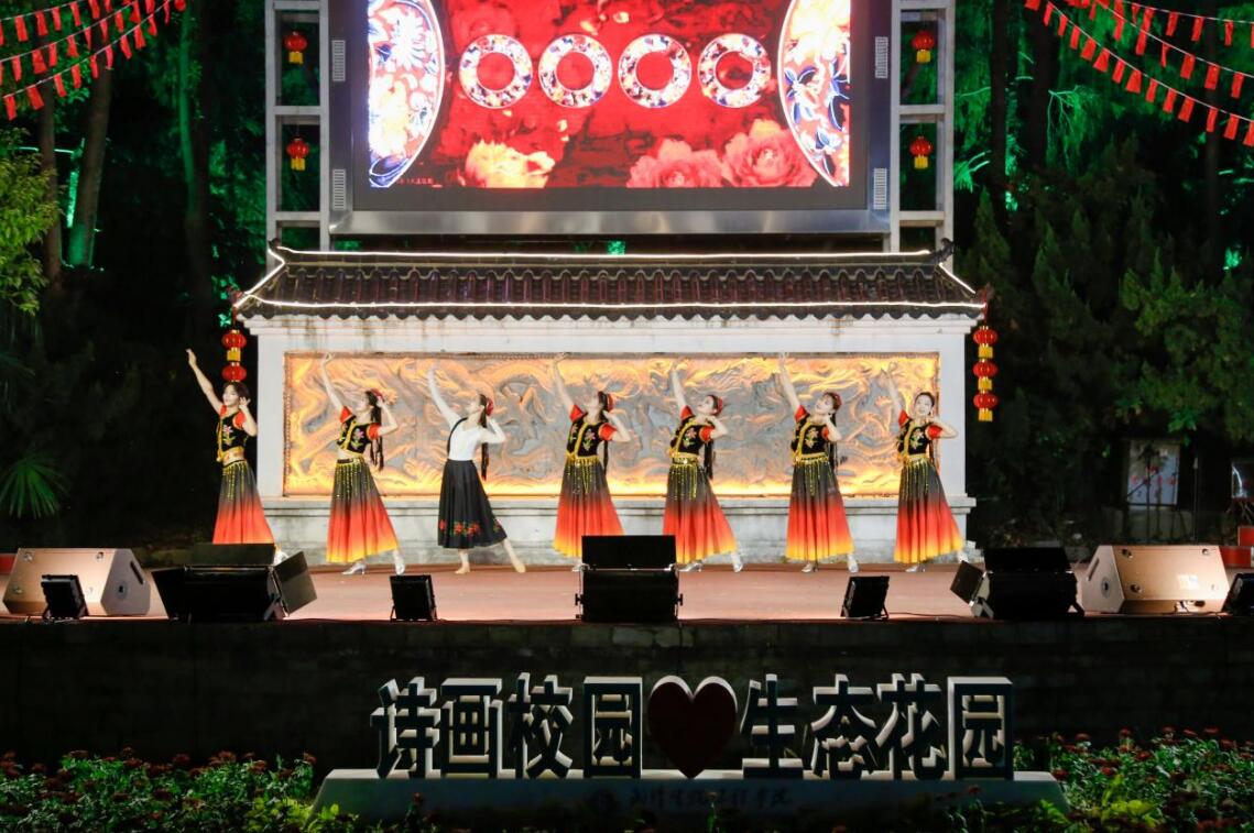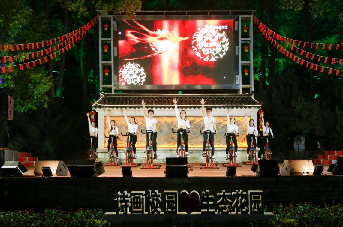 奋进新征程”2022年迎新晚会在晨光湖广场、问天湖景区、东森广场、健源多功能舞场等校园网红打卡地盛大启幕。万余名师生一起用歌声、舞蹈、朗诵等展现青春风采,为祖国华诞送上最真诚的祝福。