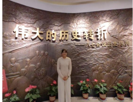追寻红色足迹,王珺婷同学带领大家走进八七会议会址纪念馆,重温“八七”精神。珍贵的文献资料、实物展品与历史照片,清晰勾勒出1927年八七会议召开的时代背景、核心内容与重大意义,“枪杆子里出政权”的重要论断更让她深刻体会到革命先辈在危急关头的坚定与担当。走出展馆,王珺婷在小广场参与宣誓,阳光映照着紧握的拳头,她不禁想起自己曾因“连引体向上都做不了”而生的挫败感。返程的地铁上,她在笔记本上写下感悟:“把专业学精,就是我的‘枪杆子’。先练强本领,才能答好这份跨越百年的时代问卷。”