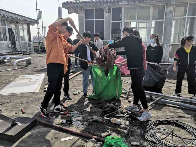 近期学校如火如荼的开展了省级文明校园的申报。集团大楼部教学楼管理员开展了一次针对性的楼栋清洁。此次清洁的地方为楼栋楼顶。教学楼楼顶卫生一直都是老大难,楼顶有不少学生曾经丢弃的生活垃圾以及当时建设楼栋时所遗留的建筑垃圾,清理难度大,清理项目多且复杂。各位教学楼管理员,在此次省级文明校园创建中,为了进一步为学校的文明创建添砖加瓦,不顾辛劳、用于担当,和兼职的学生一起参与到清理劳动中来。在劳动过程中,不少学生表示管理员年岁较长,是长者,只需要在旁边指导他们即可。可是楼栋管理员有着不服老的干劲,传承了学校劳动育人的精神,身先士卒的带头劳动,兼职学生在他们的带领下更干劲非凡,极大的提高了劳动绩效并取得了显著的效果。