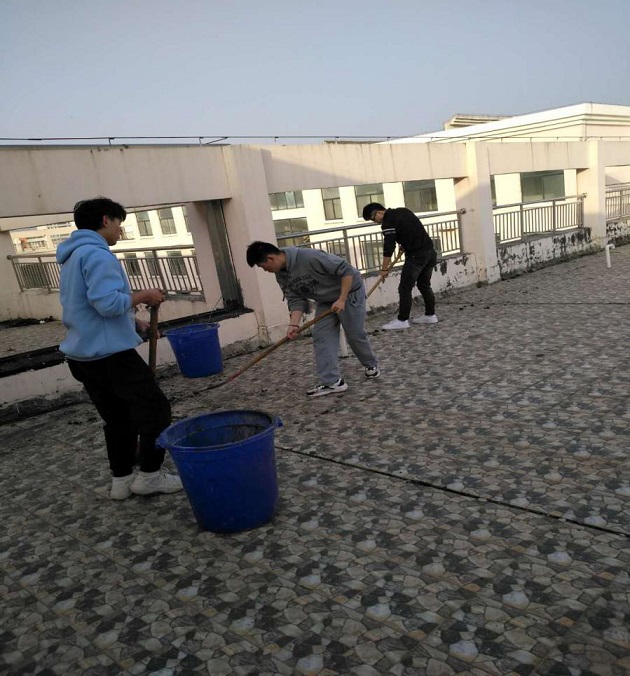 (图五 学生在5号楼进行楼顶卫生清扫)