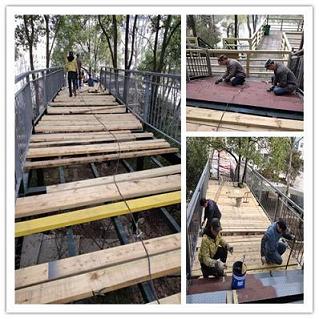 工作动态 当前位置: 首页 >> 工作动态 >> 正文 如茵山天桥顺利建成 发布日期:2019-03-20 点击: (通讯员 金祖芬)一桥飞架南北,校园又添一通途。随着工人手中最后一块防腐木铺装完成,如茵山天桥今日顺利搭建完工。如茵山天桥由校铁木加工厂承建, 全长28.6米、宽3米、高4.2米,主体采用钢材焊接,桥面铺防腐木,北连如茵山,南接龙虎山林空栈道,在交通和造景方面效果显著。 铁木加工厂电焊工、油漆工、木工正在如茵山天桥搭建现场交叉作业 上一篇:“落叶”化作春泥更护花 下一篇:后勤集团、保卫处联合开展食品及消防安全培训