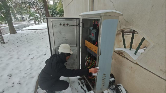 水电中心立即组织专业力量,对校内配电房、箱变、配电柜等电力设施,以及供水管道、无负压设备、屋面供热系统等展开全面巡查。工作人员逐点排查、细致记录,重点防范低温导致的设备冻损与故障隐患,发现问题立即整改,全力保障校园水电供应安全稳定。
