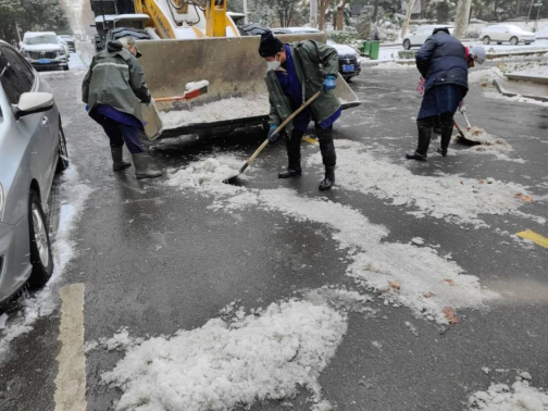 从主干道到生活区,从设备间到单元门,后勤集团各部门协同作战、恪尽职守,用忙碌的身影筑起雨雪中的温暖防线。后续,后勤集团将持续关注天气变化,完善应急响应机制,以更扎实的举措、更优质的服务,全力守护校园平稳运行和师生安心生活。